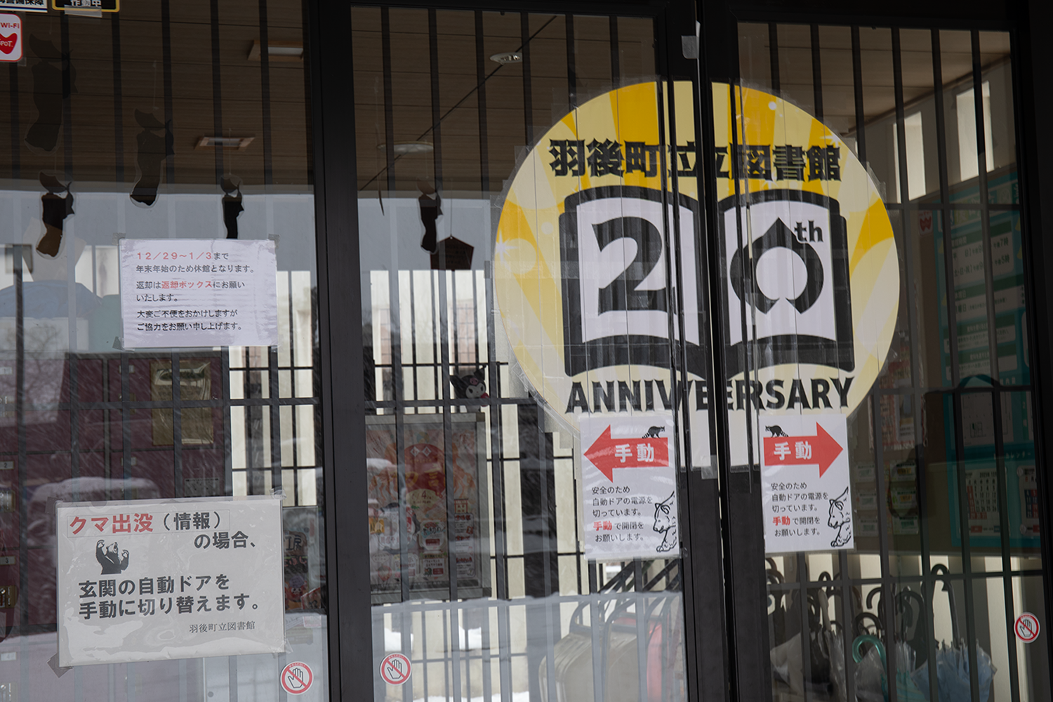 羽後町ツキノワグマ対策会議の決定を受け、今年の11月末から入口の自動ドアは手動対応に