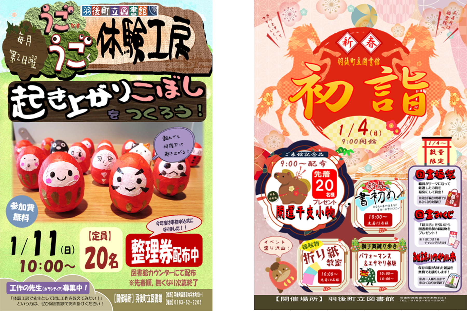 さて、2025年も残すところあと数日となりました!2026(令和8)年の年明け、町立図書館は1月4日(日)9:00より開館予定。新年ならではの豪華な催しが行われます。詳細は下のポスターから↓