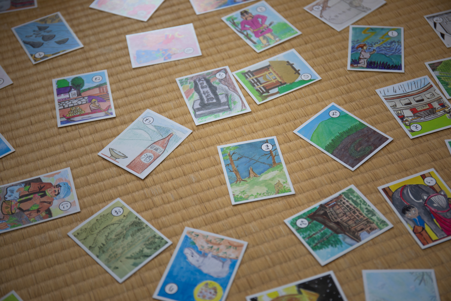 羽後町PTA連合会母親委員会からの提言を受け、1987(昭和62)年に教育行政懇談会において郷土かるたの作成が決定。かるたの句と絵は町の広報などで公募され、町内外から700点の句と500点余りの絵が集まりました。選考を経て48枚が決まり、1989(平成元)年に念願の「郷土かるた」が完成しました。