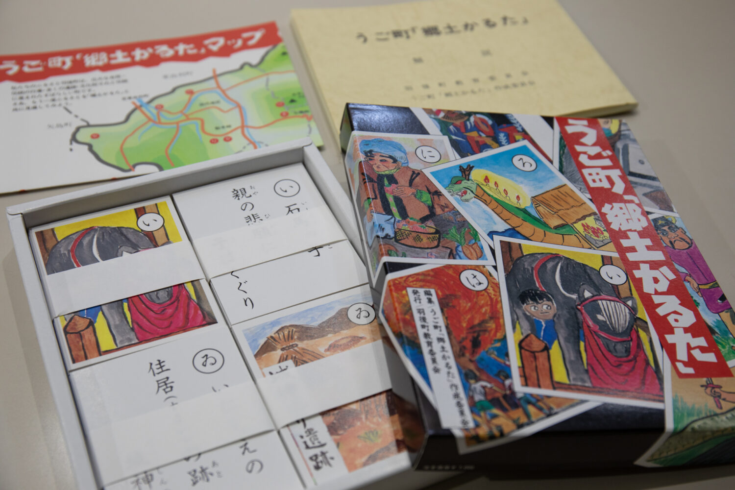 今回使われたうご町「郷土かるた」、気になった方は羽後町の歴史民俗資料館もしくは道の駅 端縫いの郷へ。実物を見ることができるほか、郷土かるたを1箱1,000円で購入できます。郷土かるたの歴史やそれぞれの札の解説が書かれた冊子と、うご町「郷土かるた」マップの付録つきです。