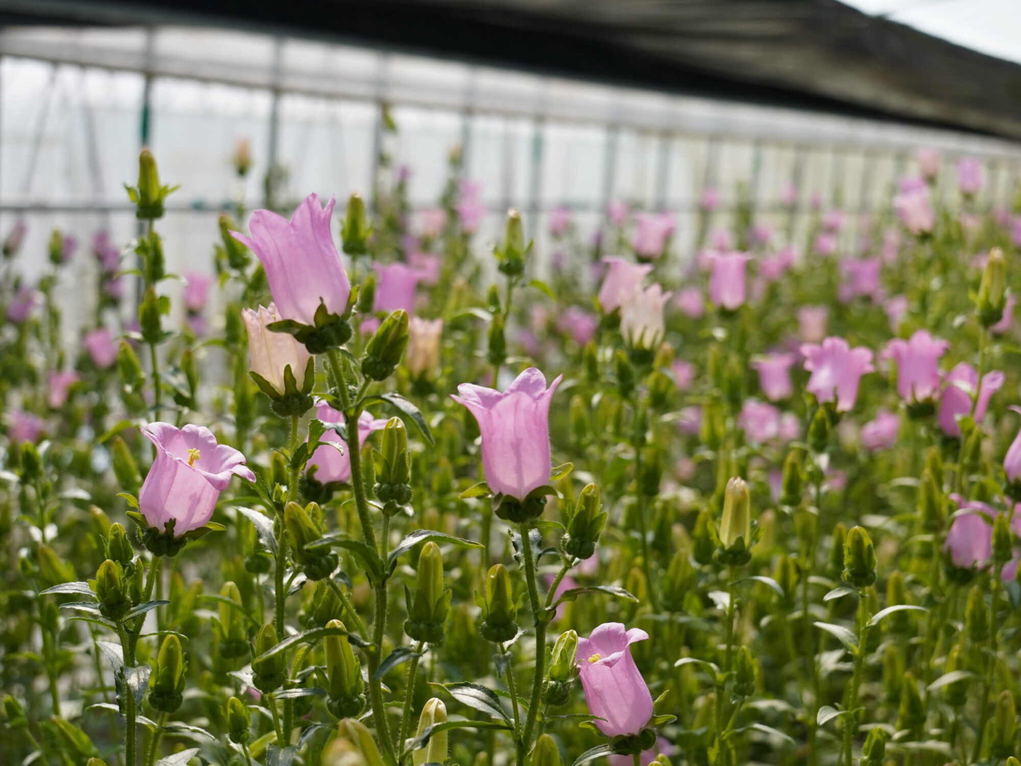 カンパニュラは今がちょうど刈り取り時期で、だいたい2月後半から5月中旬までが収穫期です。羽後町の農協では3〜4月の早採りが一つのブランドになっています。