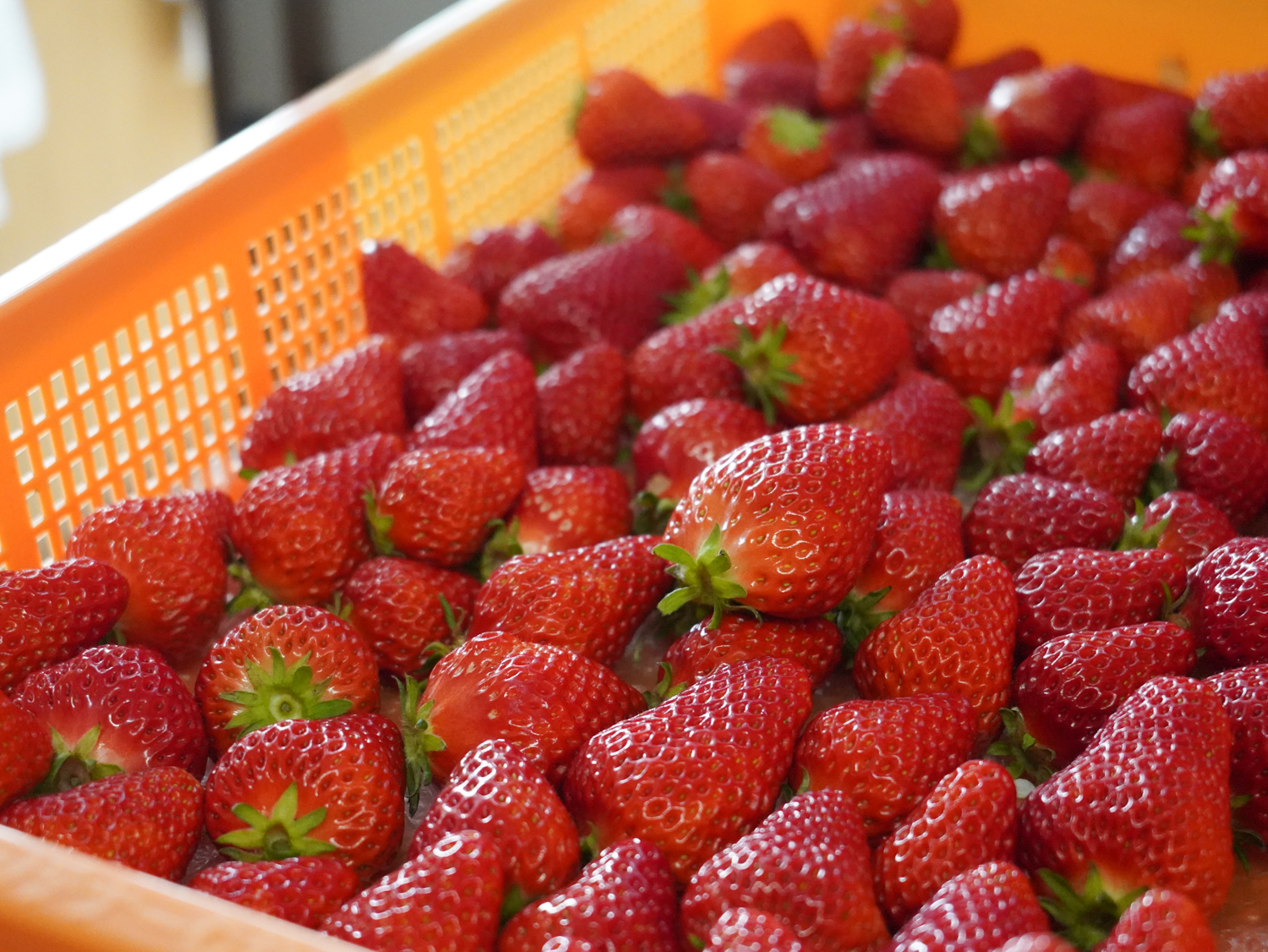 冬〜春のフルーツの代表格、いちご。この季節、道の駅うごや近隣スーパーには羽後町産の真っ赤ないちごが並びます。