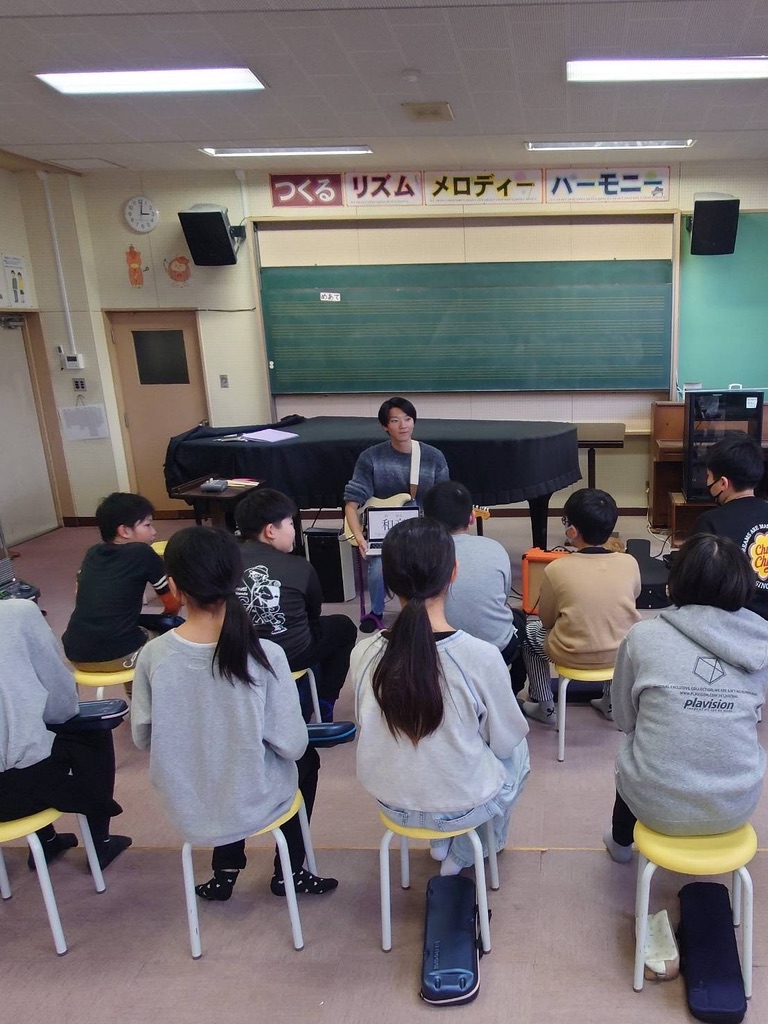 今年度、西馬音内小学校では地域の大人を講師としたクラブ活動が実施されました。2025年11月13日(木)に、私は芸能クラブの講師として音楽の授業を実施させていただきました。