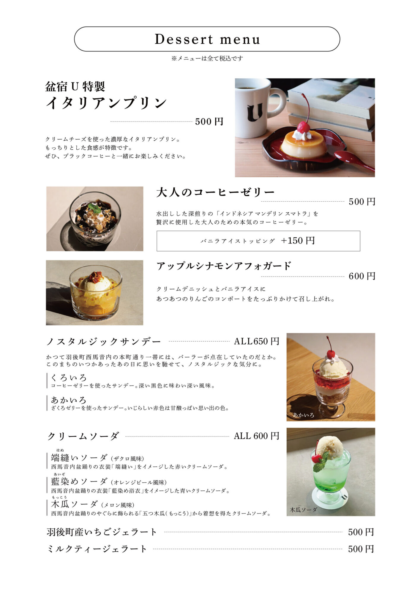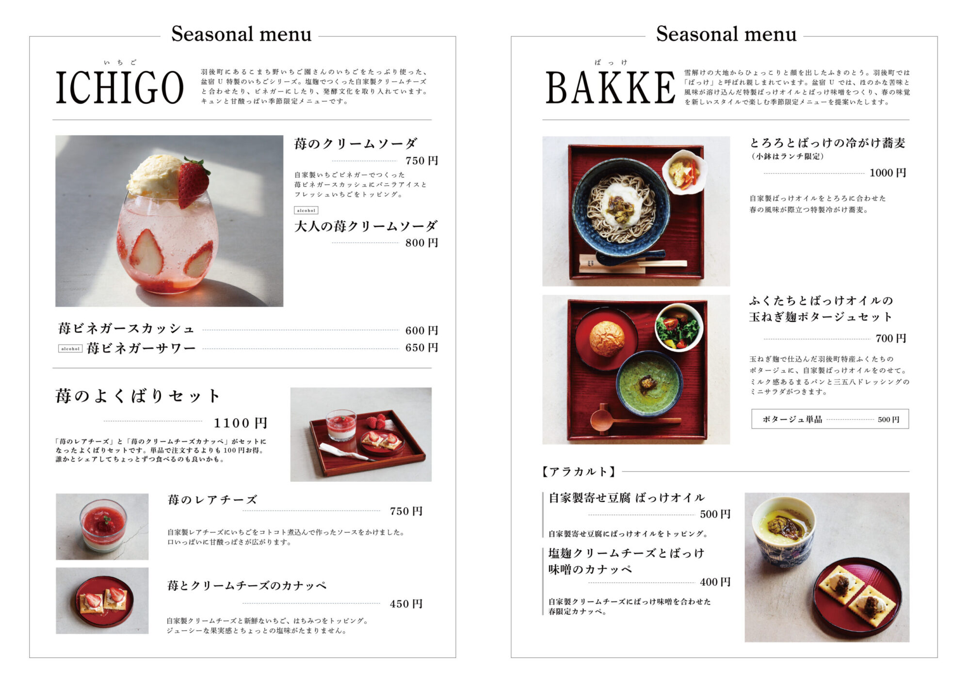 西馬音内本町通り(盆踊り会館目の前)に開業して、1年になる盆宿U。この春から、盆宿Uのカフェ&バー「lounge U」のグランドメニューがリニューアルしました。